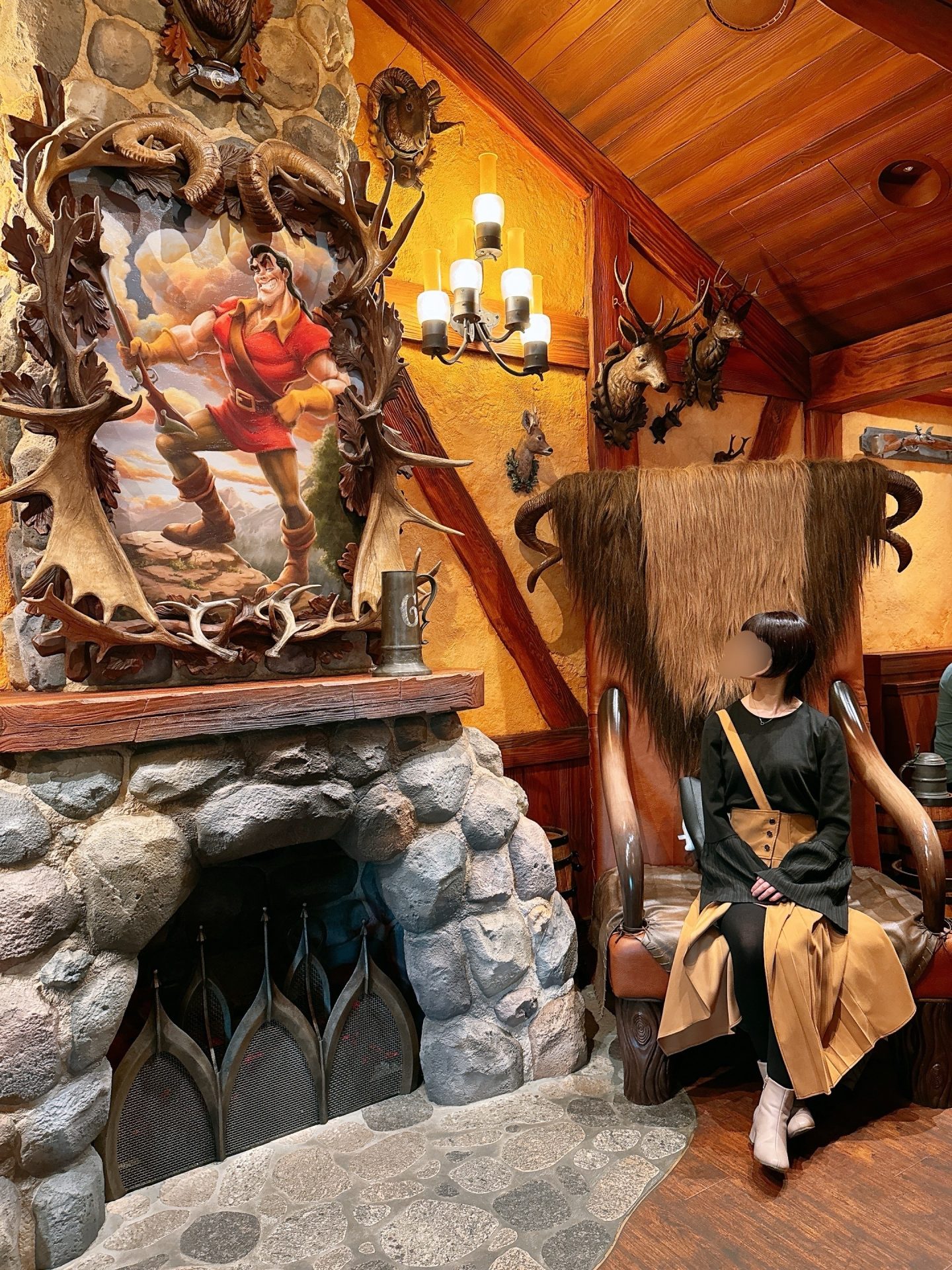 あんな感じで乾杯できないかしらと思っておりましたら、陽気なキャストさんがたくさん登場しまして、みんなでガストンの肖像画に向かって乾杯できましたw