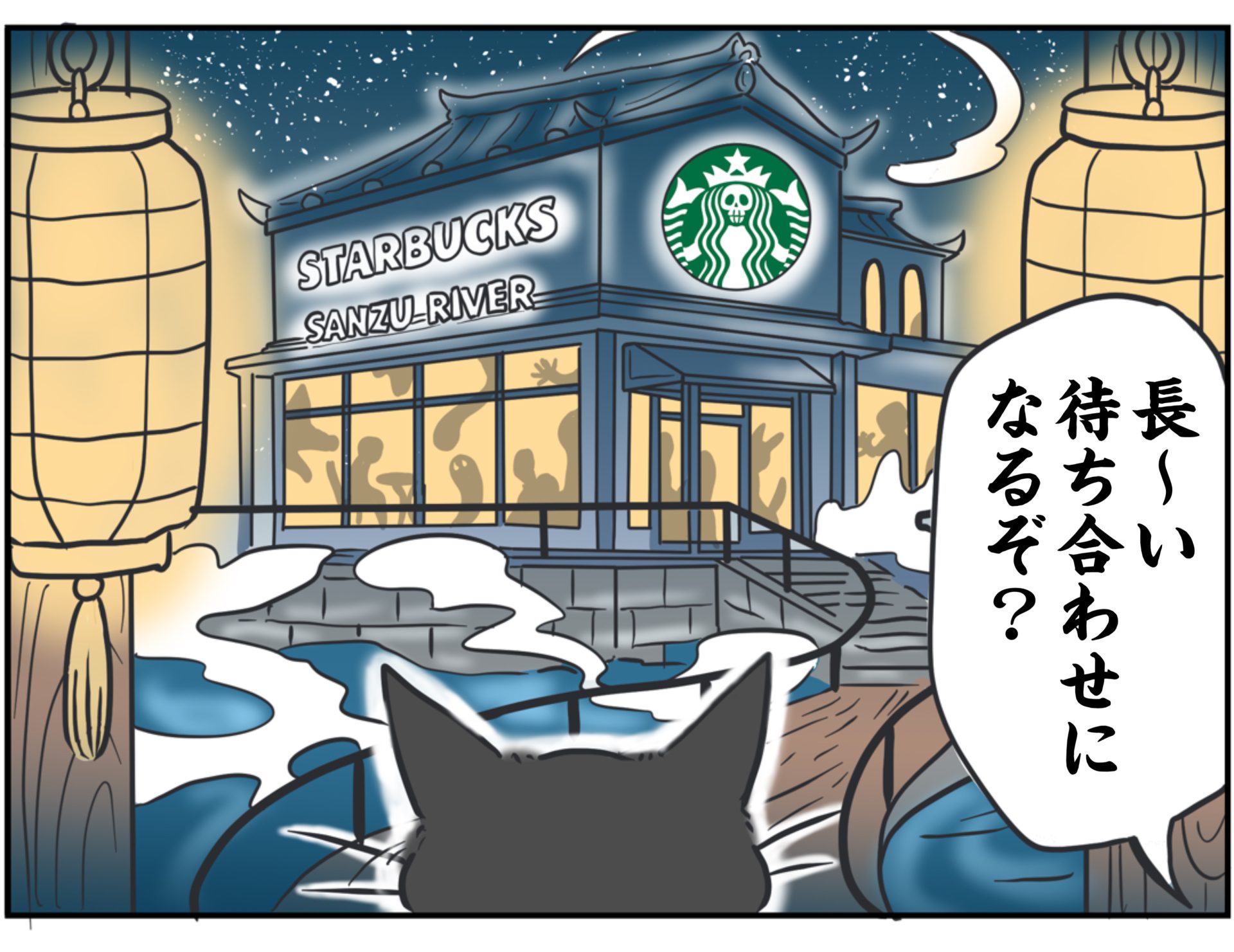 ジジくんは先に『スターバックス三途の川店』で、ちゅ〜るフラペチーノでも飲んで待っていてくれるはずでございます。
